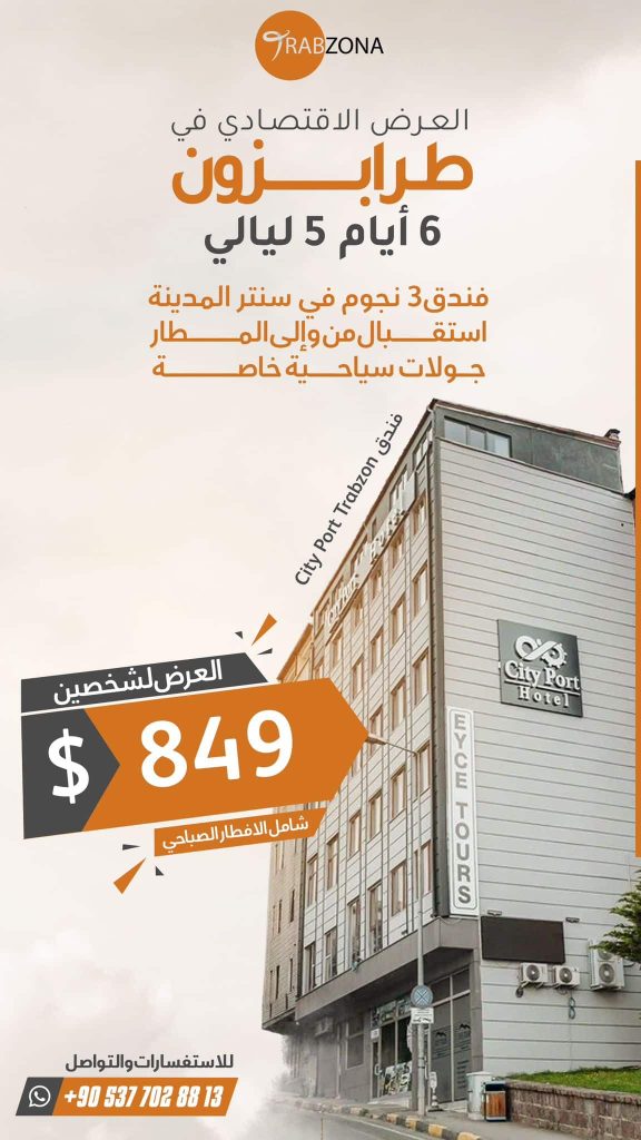 ان تكلفة السفر و الاقامة في فندق 4 نجوم على البحر لشخصين تبلغ 2000$ تقريبا وهو أفضل سعر لمدة اسبوع للسياحة في طرابزون لعام 2026